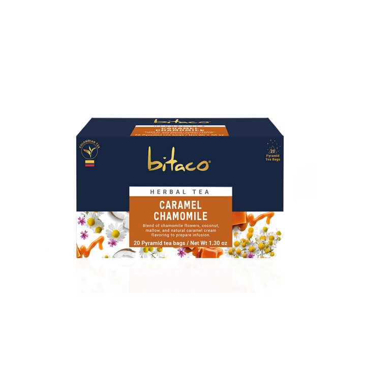 Caramel Chamomile nace inspirado en una mezcla envolvente que combina la suavidad de la manzanilla con la dulzura reconfortante del caramelo. Una pausa dulce, serena, que recuerda al silencio entre calles empedradas y librerías antiguas. Puede parecer inglés…pero este sabor fue cultivado entre montañas colombianas, donde también sabemos de pausas, de calma… y de belleza. Caramel Chamomile. Inspirado en Londres. Hecho en Colombia. Solo en la Colección de Exportación de Bitaco. Ingredientes: Flores de manzanilla, coco deshidratado, malva y sabor natural a caramelo nata.