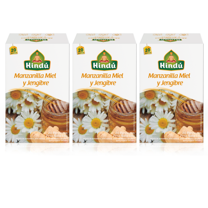 Deliciosa mezcla de Manzanilla, Miel y Jengibre, un dulce sabor que te cuida por dentro.